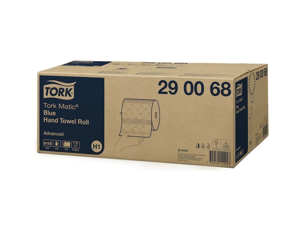 Tork Matic® papierové utierky na ruky v kotúči Advanced sú schválené pre styk s potravinami, vďaka čomu sú ideálne pre čistiace stanice v potravinárskych zariadeniach. Kotúče možno použiť pre Tork Matic® zásobníky na papierové utierky v kotúči, ktoré boli vyvinuté na jednoduchú údržbu na frekventovaných toaletách a umyvárňach. Šetria čas a znižujú spotrebu vydávaním útržkov po jednom.