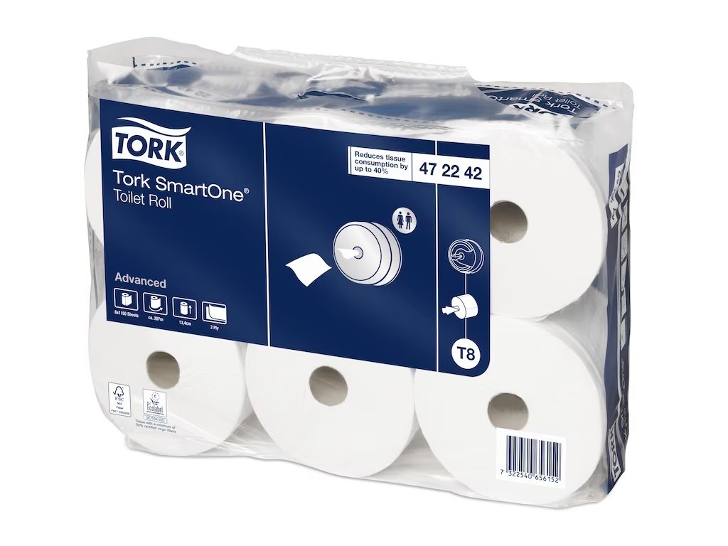 Tork SmartOne® systém toaletného papiera v kotúči vydáva jeden hygienický list papiera naraz, čím pomáha znižovať spotrebu až o 40 % v porovnaní s tradičnými automatickými kotúčmi Jumbo, čo znamená viac návštev na jeden kotúč. Tork SmartOne® kotúče s extra veľkou kapacitou sú vhodné do náročných toaliet a umyvární s vysokou návštevnosťou.